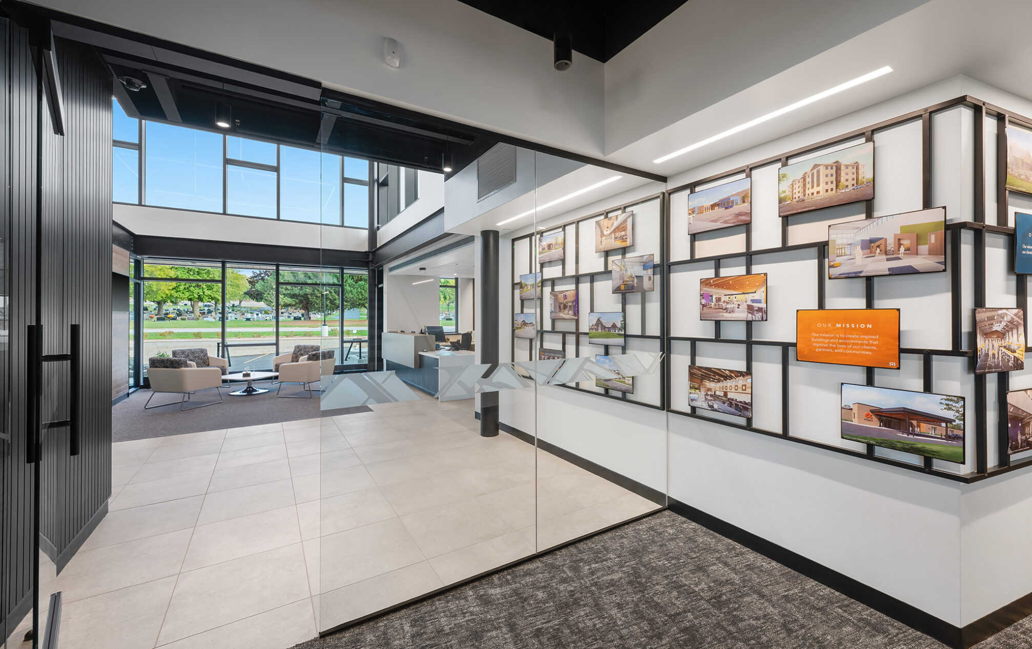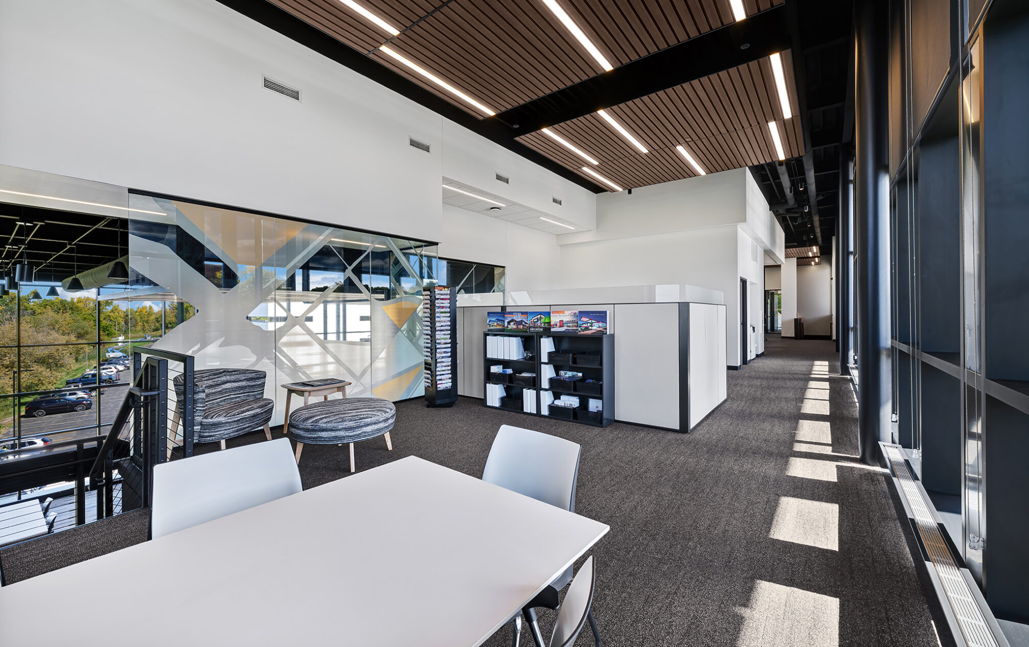 Indoor parking, a large copy room, ample storage, a private lower-level restroom with a shower, and a wellness room are also part of the design, ensuring convenience and well-being for our team.